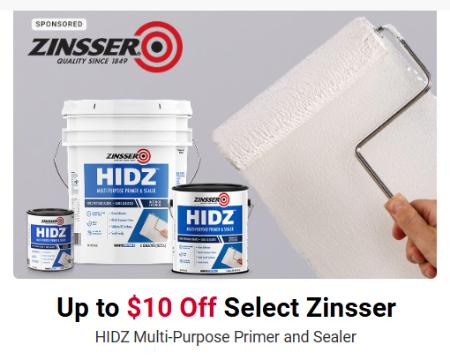 Up to $10 Off Select Zinsser HIDZ Multi-Purpose Primer and Sealer